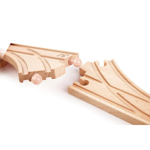 Switch tracks with easy with the Hape Y Track adaptor pack.