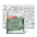 - Contents: An A3 reusable silicone mat 9 markers for hours of colouring. A handy carry pouch (so you don’t lose anything while on the go!)