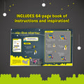 Assemble a high-quality foot-and-a-half tall chipboard gravity drop tower full of LEGO contraptions. Unleash a pack of 6 wood balls from the starting gate and watch them race through a maze of twists and turns, sliding down ramps, flipping spinners, and whirling down a funnel, before they finally plonk into their destined buckets. (All included right out of the box!) But it doesn't stop there. Build and rebuild activities that include a gravity labyrinth, zip-line starter, grabber claw and more. Fun, non-fiction content highlights the crazy machine inspirations of Rube Goldberg and creative ways to theme your own pinball-style arcade game. Learn about famous physicists and "back to the junk drawer" ways to customize and create chain reactions with elements from home. Physics is fun with this STEM kit that lets you roll, bounce, rebound, and rebuild with LEGO!