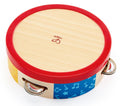 This tambourine adds rhythm and energy to any musical performance. The wooden play surface helps keep the volume down to comfortable levels.