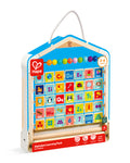 Make early learning fun with the Hape Alphabet Learning Pack / Abacus. Combining colourful letters, numbers, and beads, this educational toy is designed to help children build literacy and numeracy skills through play. Match the 26 letter cards and 9 number cards, practice writing on the black board and take it along to learn anywhere.