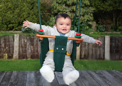 This Solvej swing is an exclusive and attractive baby and toddler swing for the home environment, indoors and out, skilfully crafted with top quality materials. The timeless natural design and colour range means this swing will complement any home and garden environment.
