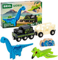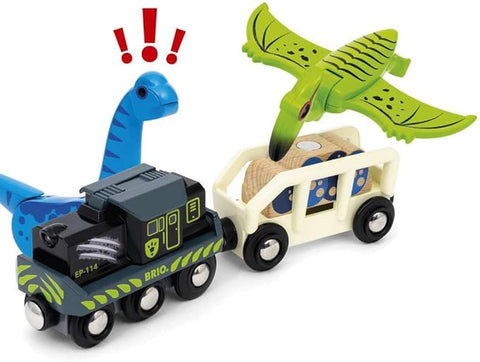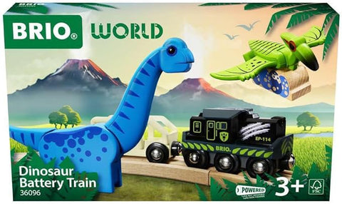 Embark on a prehistoric adventure with the Dinosaur Battery Train. Explore a world of dinosaurs on board this battery-powered toy train with forward and reverse functions as well as a front light. Use the train's wagon to help move the dinosaurs and their eggs from place to place around your railway tracks. Two playful dinosaurs are included in this playset, both featuring colourful designs, unique moving parts and classic BRIO magnets to interact with the world around them.