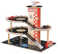 Contains: Multi-level garage playset with cars, fuel pump, lift, and helicopter landing pad