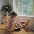 The Pikler Rocking & Climbing Arch serves as both a teeter totter and climbing device for active toddlers. Crafted using responsibly-sourced birch plywood and beech wood, it's a wonderful sustainable option for mobile little ones exploring their adventurous side. Through physical developmental play with the Pikler system, children gain muscular and cardiovascular strength, build self-esteem, improve gross motor skills and explore their imagination simultaneously.