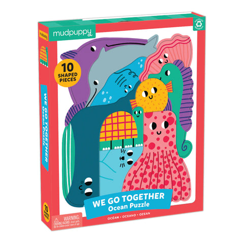 The Ocean We Go Together jigsaw puzzle from Mudpuppy features 10 underwater ocean buddies shaped pieces that fit together to create a larger, colourful scene.